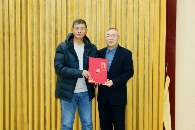 邓春生代表学院向袁博士及各位企业家代表表示热烈欢迎,并为袁志润博士与朱友胜教授颁发学院现代造纸技术专业“特聘教授”聘书。