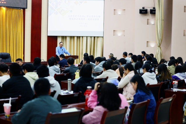 交流环节中,袁博士积极与师生、企业家代表展开交流互动,就大家关心的生物质精炼、植物提取、技术前沿、技术难点、绿色包装、专业内涵建设等内容进行耐心解答和深入研讨。