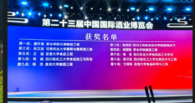10月16日,2025“茅台王子杯”全国大学生白酒品评技能大赛总决赛,在武汉盛大启幕。四川赛区仅选拔出20名优秀大学生参加总决赛,其中就包含了学院的4名酿酒技术学生。经过一路披荆斩棘,酿酒技术专业学子赵奕欣凭借扎实的专业功底、敏锐的感官品评能力和稳定的临场发挥,从众多参赛者中脱颖而出,勇夺全国总决赛第二名。